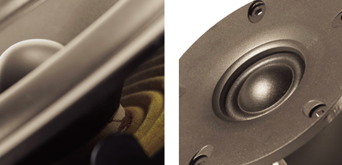 All four speakers couple a 25mm textile dome tweeter with an innovative aluminium-core voice coil, delivering a performance that matches or even exceeds the bandwidth possible from metal dome tweeters, whilst avoiding their inherent problems.