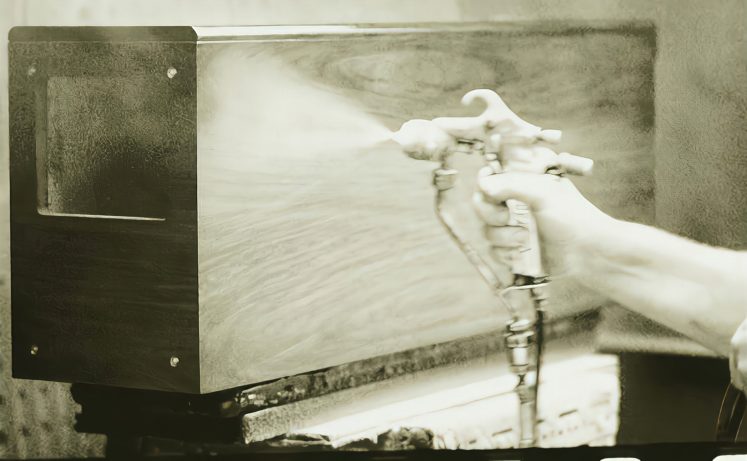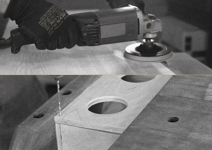 Veneer sections are glued to individual panels and then held under high pressure in purpose-built clamps for the glue to dry naturally over 48 hours. On completion, each cabinet is hand-sanded and varnished to perfection, with the quality and consistency of the finish checked every step of the way.